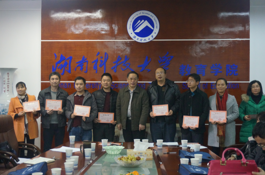 省培研修学员代表贾高辉老师发言,他首先感谢了省教育厅和湖南科技大学提供的此次学习交流机会,作为湘潭师范学院94届毕业生能够参加此次省培心情激动,作为学科带头人、学校骨干教师对这次省培的机会很珍惜同时也很期待。最后开班典礼在我院党委书记谭建平教授的总结发言中圆满结束。会后全体与会教师合影留念。