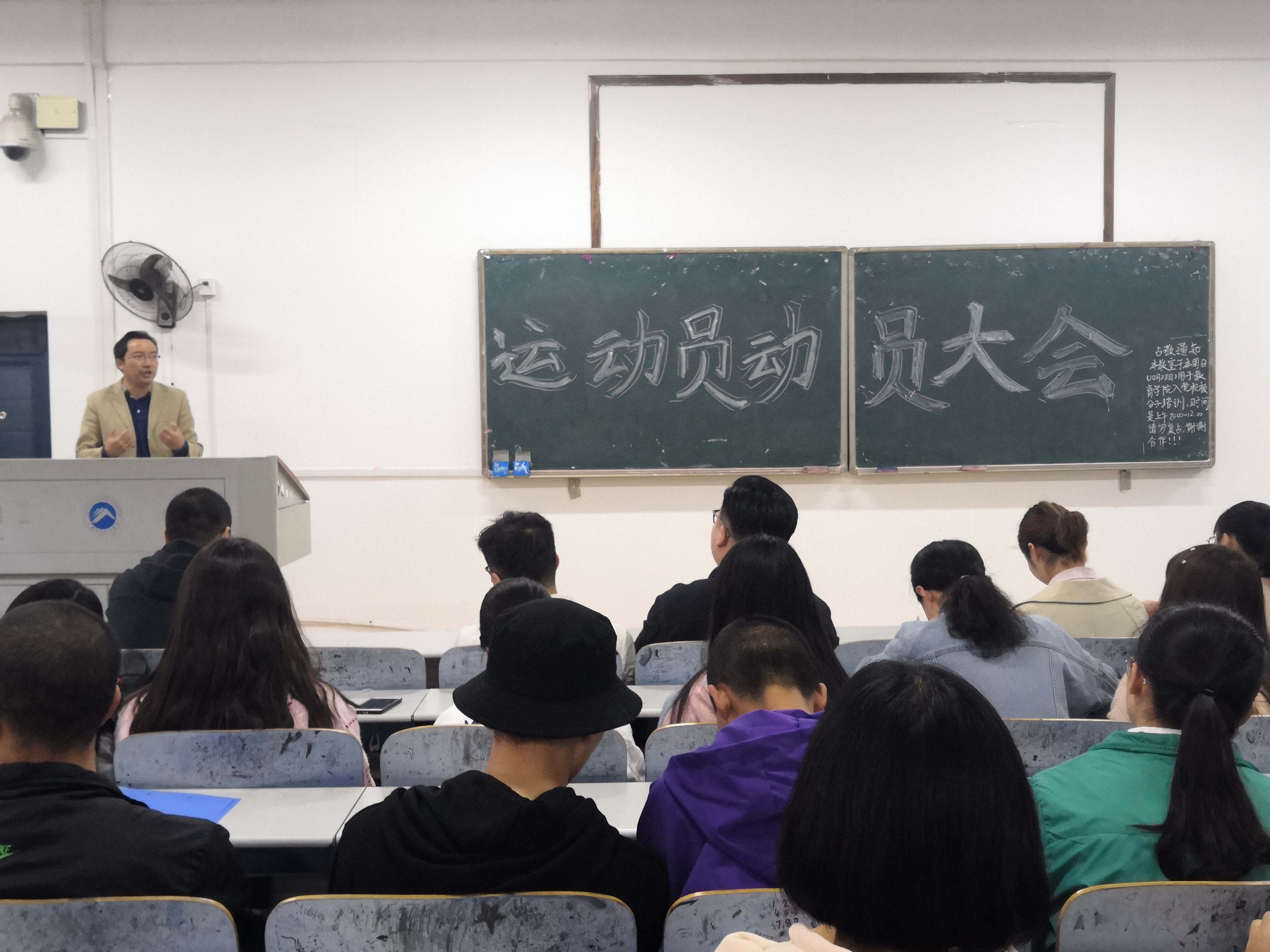 接着体育部部长曾嘉欣上台介绍本次运动会的注意事项以及各部门所负责的工作,强调各部门需要通力协作,共同为运动会保驾护航。