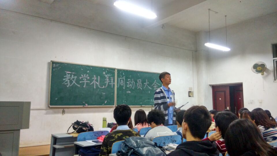 深秋的凉风吹起学风建设的大旗,湖南科技大学一年一度的教学礼拜周活动如约而至,为了响应学校的号召,加强学院学风建设,提高教学质量,2015年11月5日17:50,yl88858永利集团于第八教学楼1-5召开了教学礼拜周动员大会。参加本次大会的成员有学工办主任李涛老师,第十七届团委学生会全体干部,以及13,14,15级各班的班长和团支书。