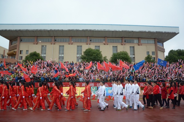 接下来,是庄严的升国旗,全体肃立,全场瞬间安静下来。礼毕,由校党委书记刘德顺为此次运动会致辞,预祝此次运动会顺利举行。运动员代表李宇坤宣誓全体运动员将秉承赛场精神,团结友爱,赛出自我,赛出风格。幕后工作志愿者代表也在开幕式上表明对运动会的支持,竭力做好相关服务。