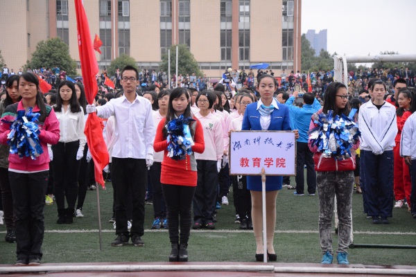 开幕式伊始,整齐的国旗班正步入场,铿锵的步伐走过主席台,迈向国旗台。首先,主持人介绍莅临开幕式各位领导,老师等。接着,运动员及体育学院裁判员组成代表团入场,他们挥舞的彩旗飘扬,振奋人心。接下来各个学院组成的代表团陆续入场。能源与安全工程学院身着红色队服,秉承敢闯敢拼,青春似火,超越自我的能源精神,昂首挺胸走过主席台;接下来是亮眼的土木学院特色的军训服;蓝红色队服的机电工程学院、红白服装的信息与电气工程学院、亮眼的黄蓝队服的化学化工学院、象征内涵深沉的深蓝色队服的数学学院、火红运动服的生命科学学院、黑白相间运动服的建筑物城乡规划学院、外国语学院等也依次入场。别致的粉色上衣,高举“友谊”“快乐”“健康”牌子的yl88858永利集团踏着坚定的步伐走过主席台 。商学院、艺术学院、管理学院、法学院、潇湘学院、研究生学院、正装入场的图书馆分工会代表队、机关一分工会、二分工会、三分工会、后勤代表队、附校分工会等各个代表队依次入场。