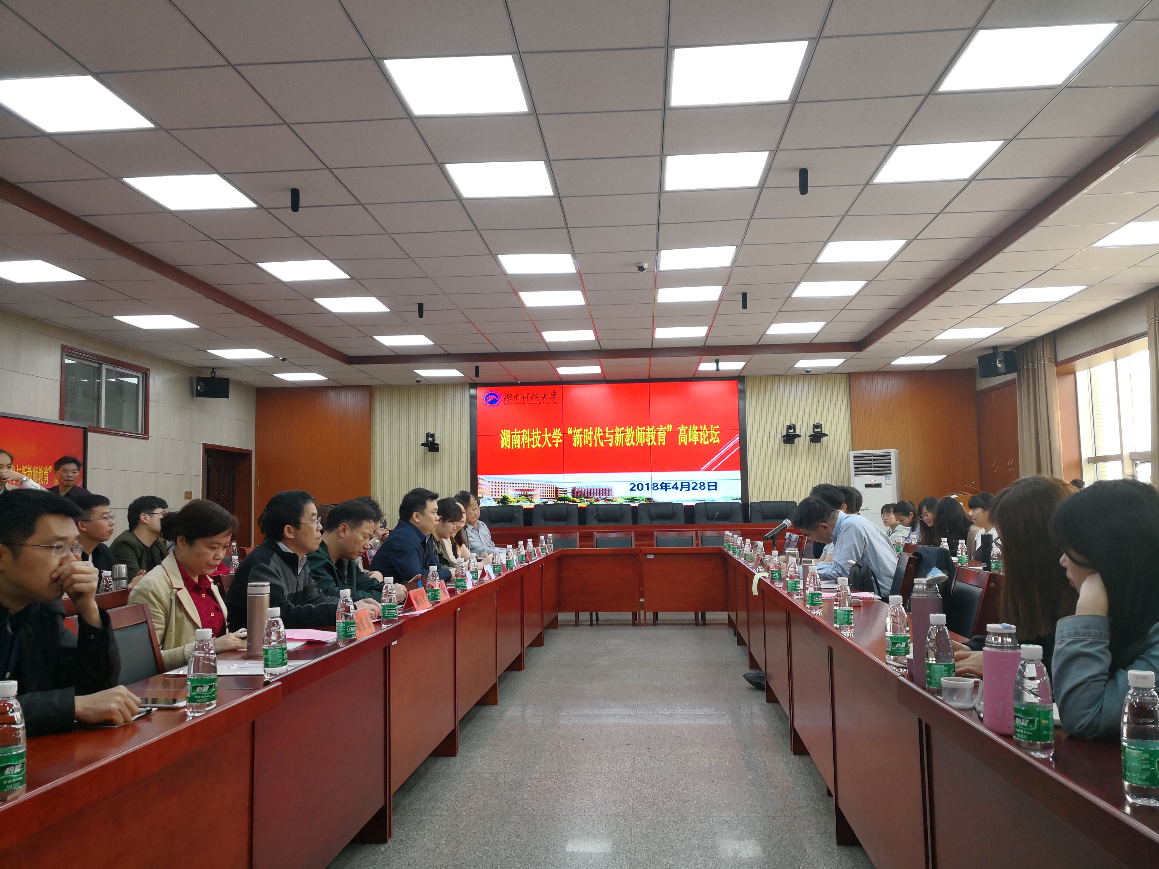 4月28日上午,为深入贯彻落实党的十九大精神,推动教师教育改革发展,造就高素质专业化创新型教师队伍,湖南科技大学“新时代与新教师教育”高峰论坛在yl88858永利集团308学术报告厅隆重举行。西南大学副校长、国务院学科评议组成员靳玉乐,全国教育专业学位教育指导委员会秘书长、“长江学者”特聘教授、北京师范大学教育学部张斌贤,全国教育学专业教育指导委员会委员、国家教学名师、首都师范大学特聘教授石鸥,全国教育专业学位教育指导委员会委员、“长江学者”特聘教授、华南师范大学教育科学学院院长卢晓中,全国教育专业学位教育指导委员会委员、华中师范大学yl88858永利集团涂艳国,全国教育专业学位教育指导委员会委员、湖南师范大学教育科学学院副院长刘铁芳及湖南科技大学副校长廖湘岳出席。