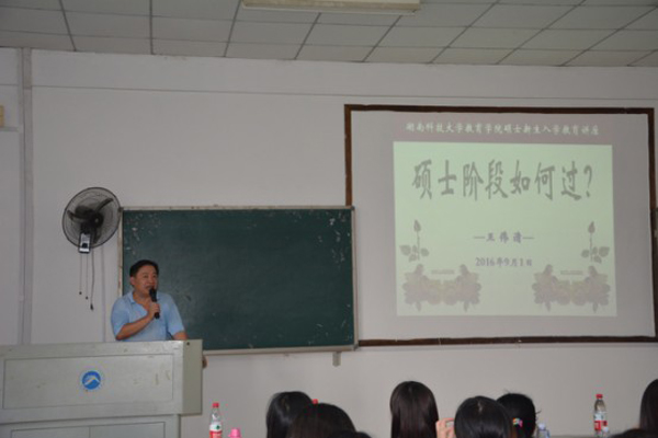 随后,在入学教育环节,院党委副书记王伟清教授就学习、角色定位、就业、管理、任务、爱情、交友等十二项内容,交流分享了研究生学习及生活中可能会遭遇的短暂迷茫或突然顿悟,以长辈的口吻谆谆善诱地为学生解疑答惑,引路指向,并强调读研不仅要把专业知识基础打扎实,而且要注重社会资源的培养和获得。之后,唐尧老师带领大家学习了《湖南科技大学研究生手册》,从学籍管理、培养环节、课外活动、奖励与处分各个章节进行了详细讲解。