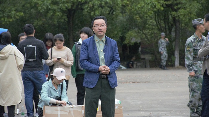 刘书记向新生发放月饼并发表讲话