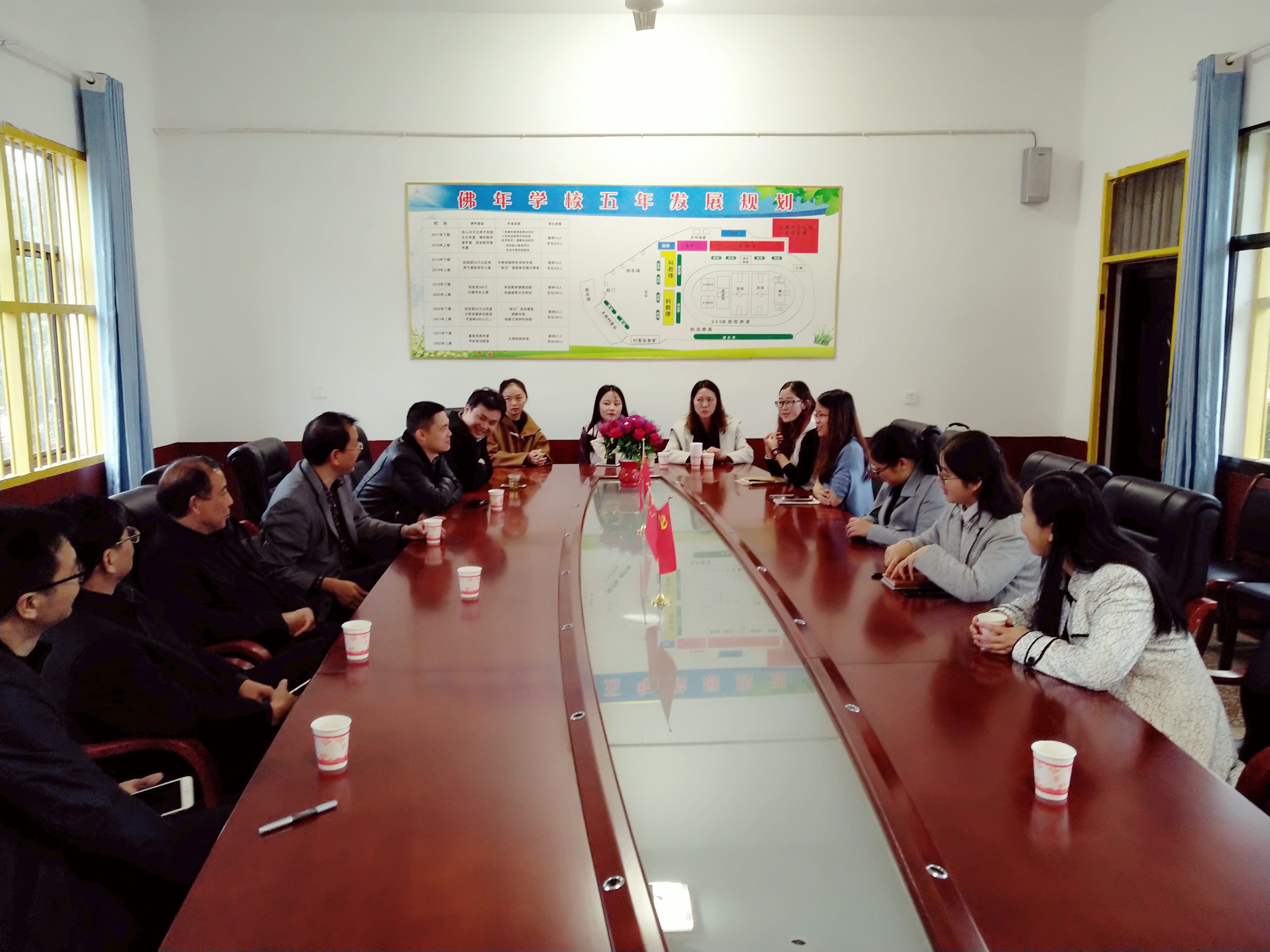 上午11时,实习工作座谈会在佛年学校会议室召开,yl88858永利集团领导与佛年学校校长胡伟及教导主任张莉莎、大林村关心支持乡村教育事业的“第一人”杨大生书记、实习带队老师李建生、全体实习生参与了此次座谈会。会上,胡校长首先对我院各位领导的到来表示了热烈的欢迎,并从小细节开始,介绍实习生在学校的日常表现,对实习成效进行了充分的肯定。紧接着,杨大生书记对yl88858永利集团给予大林村教育事业的帮助表达了感谢,对李建生老师为佛年学校的发展乃至家乡的建设所做的贡献进行了高度的赞扬,对实习生的表现给予了很高的评价。