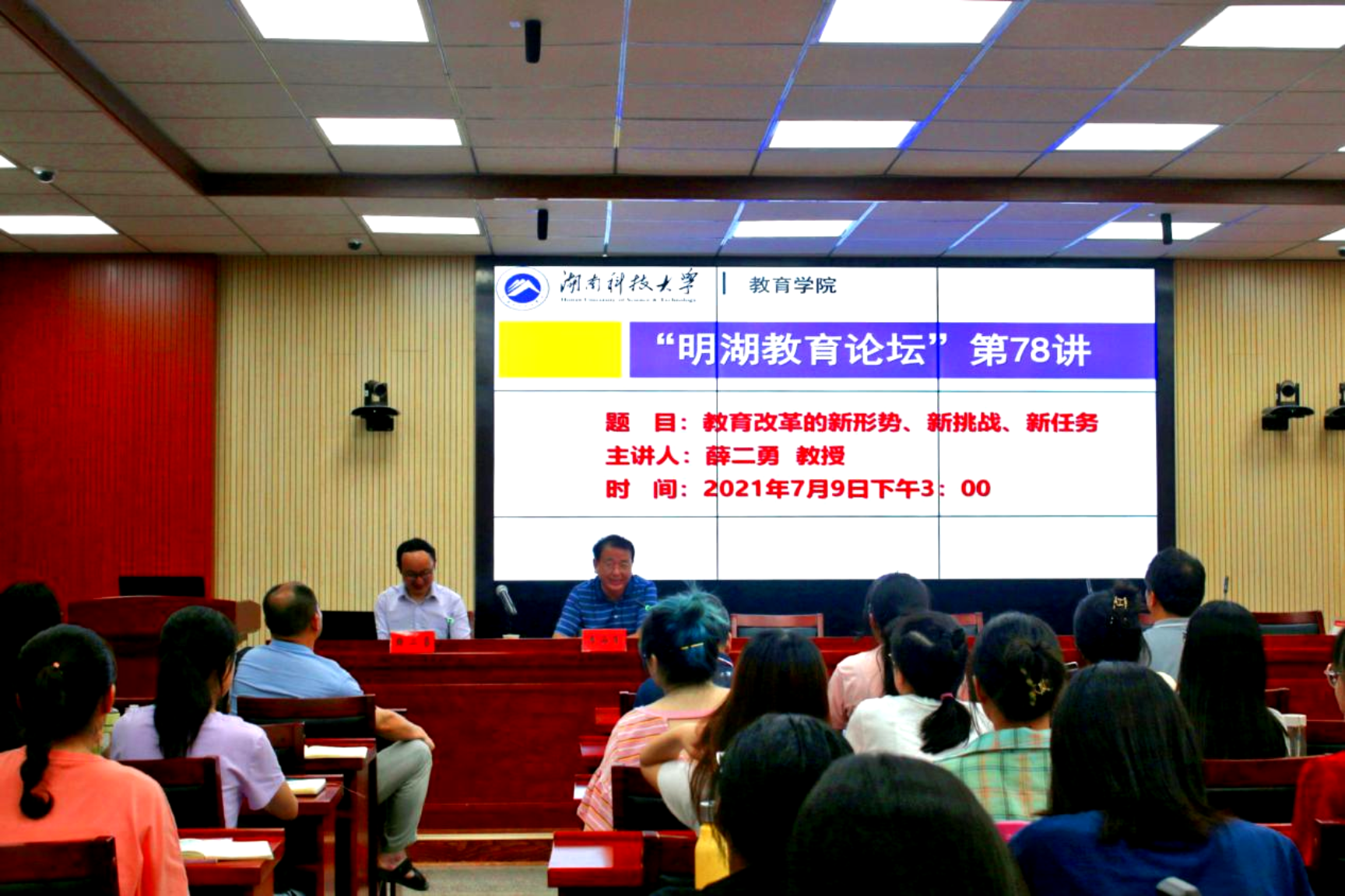 7月9日下午,教育部青年长江学者、北京师范大学博士生导师薛二勇教授做客“明湖教育论坛”,在第八教学楼308学术报告厅为我院师生带来了题为《教育改革的新形势、新挑战、新任务》的学术讲座。报告由yl88858永利集团院长李海萍主持,yl88858永利集团教师、研究生和本科生代表到场聆听。