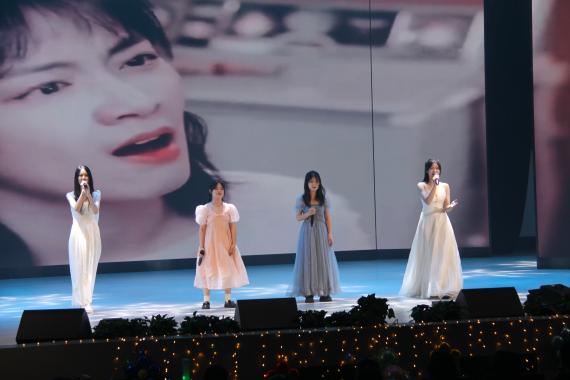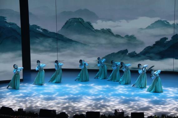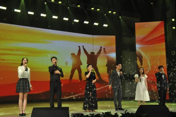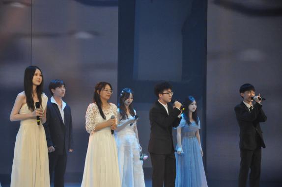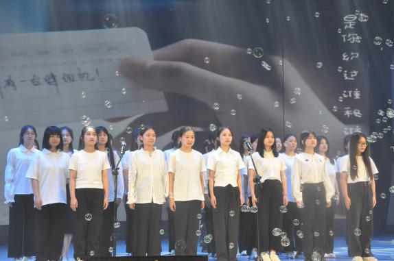 镁光灯将整个舞台照亮,现场美得如同梦幻一般。火热的开场舞迅速点燃了观众们的热情,现场的所有人都融入到了晚会的欢快气氛中,随之欢呼鼓掌。毕业生节目《男孩》、歌曲串烧《属于我们的歌》、器乐合奏《栀子花开》、师生节目《相亲相爱一家人》一系列歌曲节目接踵而至。婉转悠扬的歌声荡漾在整个会场,荧光棒随着歌声起舞,与现场观众一起享受着这场音乐盛宴。