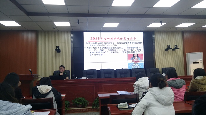 演讲主要就湖南省考研思想政治理论改卷情况及相关注意事项,考研政治的答题技巧,2018年考研时事政治复习指导进行了演示讲解