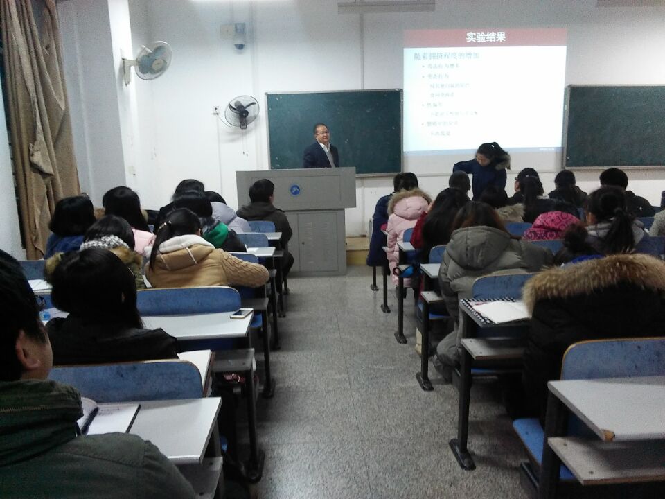2016年1月6日19点30分,我院组织的关于“心理学研究的教育价值”讲座在第八教学楼2-1教室拉开序幕,主讲人是白学军教授——荣膺中国心理学候任理事长、天津师范大学教科院心理与行为研究院院长、国务院学位委员会学科评议员、教育部高校心理学专业教指委副主任、“新世纪百千万人才工程”国家级人选等多项职务。现场座无虚席,慕名而来聆听讲座的主要是13、14级应用心理学专业的学生。