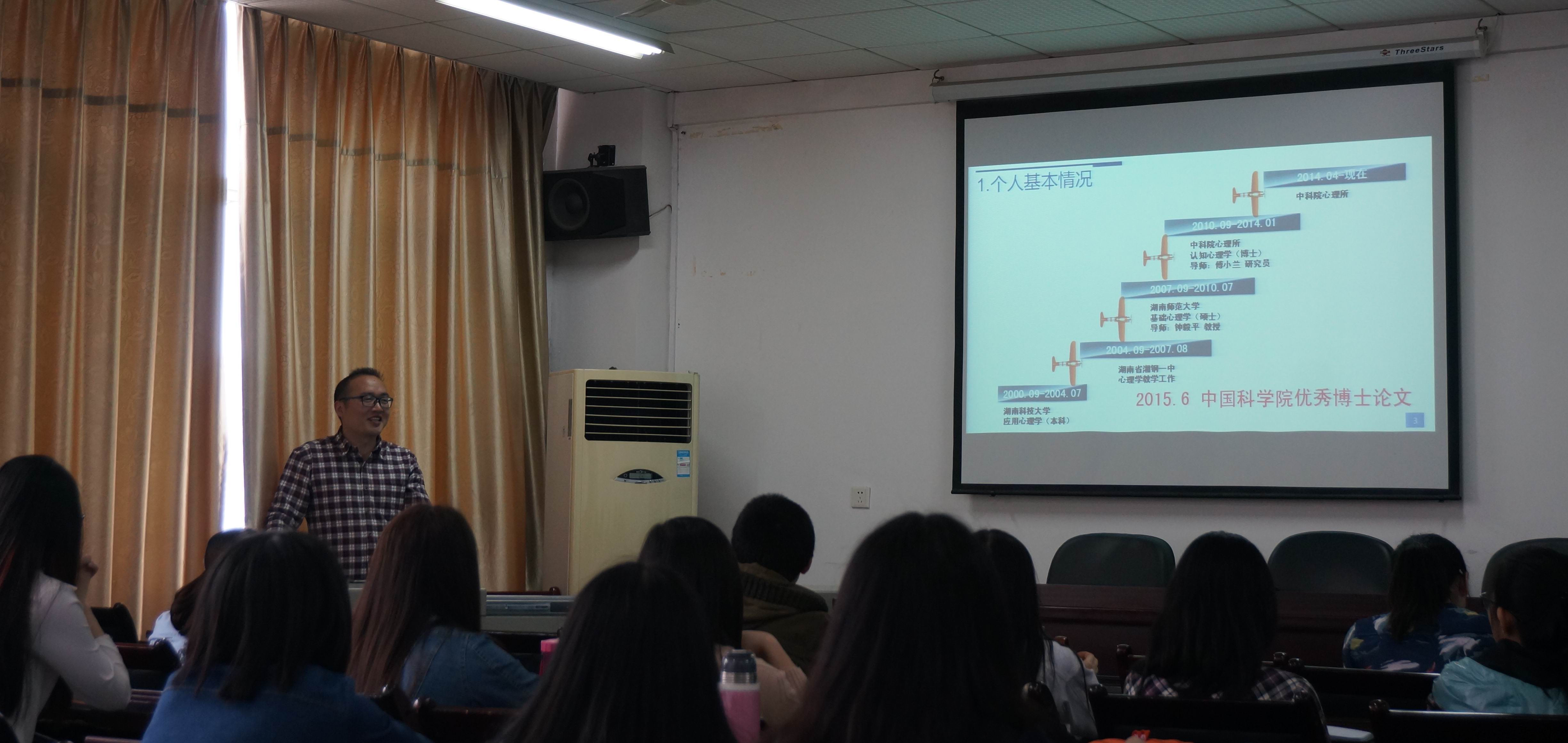 4月20日上午,yl88858永利集团应用心理学系首届本科毕业生,中国科学院心理研究所助理研究员赵科博士应邀回母校开展讲座。yl88858永利集团应用心理学系本科生、部分研究生代表参加了活动。