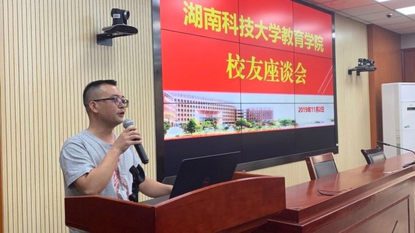 之后,与会校友畅所欲言。教职工校友钟毅平表示,“看到学院从98年只有3位教师组成的一个小系,发展到现在的规模,感到非常震撼”。2000级教育学专业唐志新说到,“15年后,走进校园看到新的教学楼、新的宿舍、新的体育场,满满的惊讶!”2000级应用心理学专业胡敏辉表达了对母校、学院的感激之情,“我们不能忘记来时的路,喝水不忘挖井人”。2005级教育技术学专业李明谈到,“回到母校,感受到学校发生的变化,同时通过校庆活动校友之间的情谊也愈加深厚”。随着话筒在大家手中的传递,与会的各位校友纷纷回忆了在校工作、学习期间的经历,表达了对学院的感恩之情,也为学院的发展建言献策。