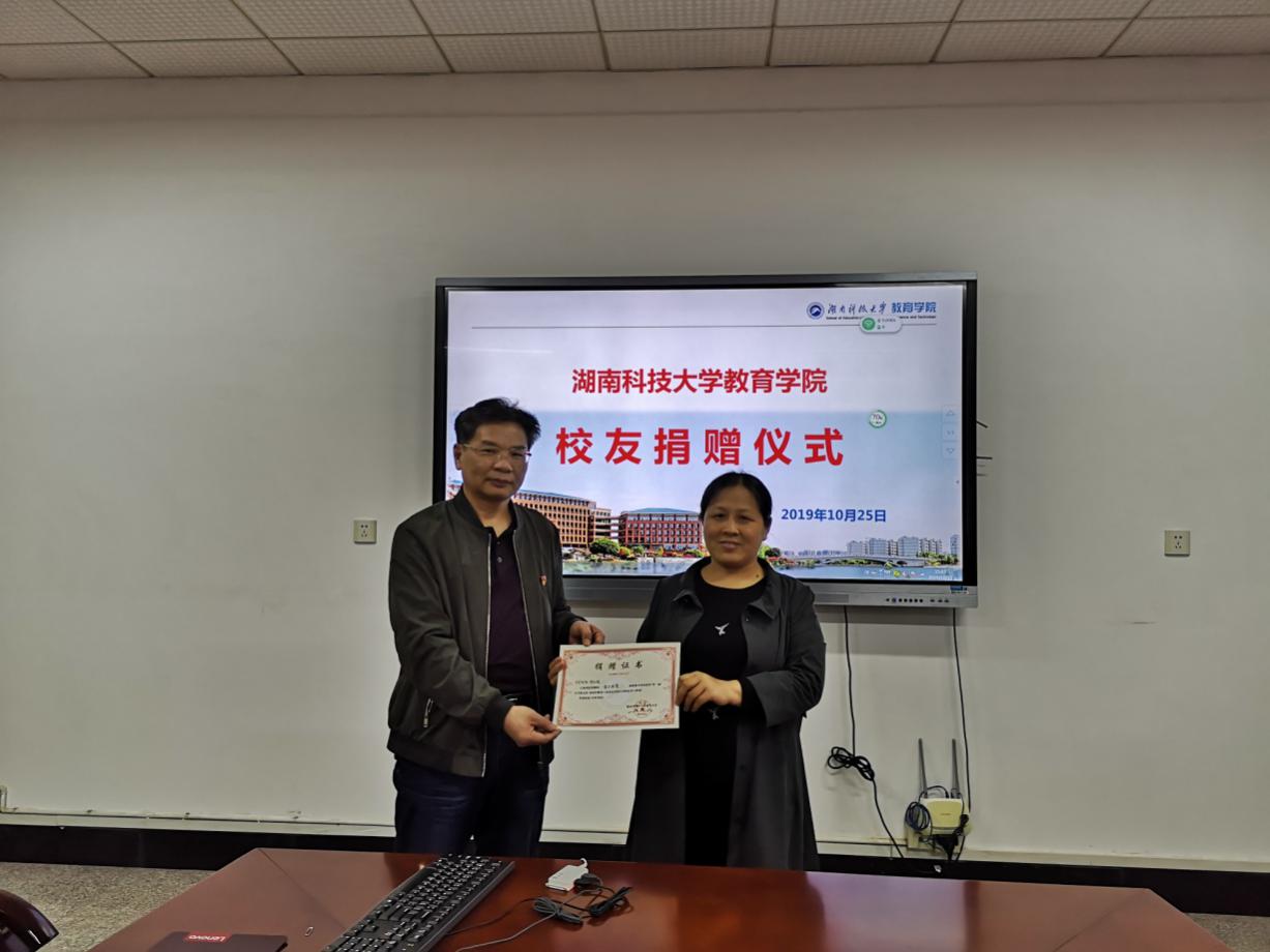 李炳煌为校友颁发了捐赠证书,对两位校友感恩母校、为母校捐资的善举表示感谢,并希望两位校友继续关心和支持学校及学院的发展。