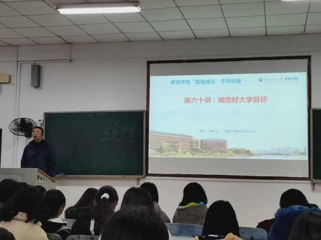 为帮助20级新生确立大学目标,度过一个充实且有意义的大学生活,12月1日下午16:00,yl88858永利集团在第八教学楼4-3教室开展主题为“确定好大学目标”的“助我成长”第六十讲讲座。讲座由20级辅导员李涛主讲,全体20级新生到场聆听。